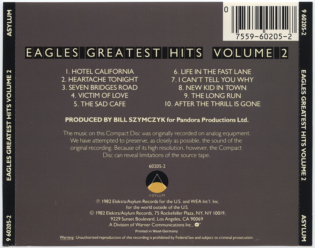 Eagles : Greatest Hits Volume 2 (V001-A002)