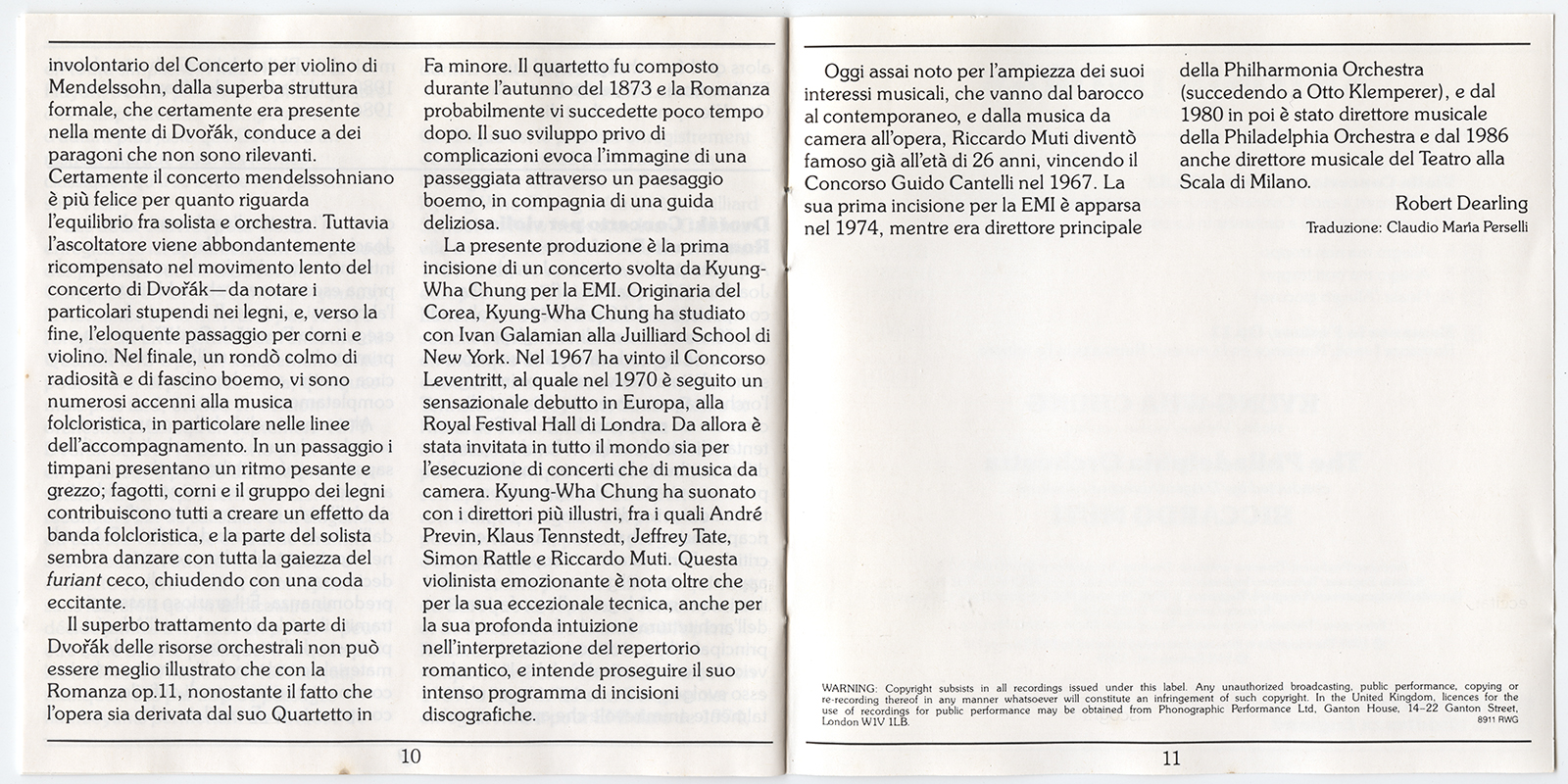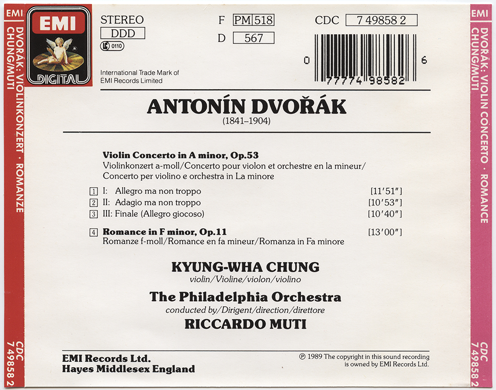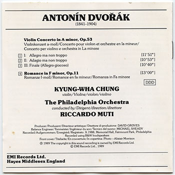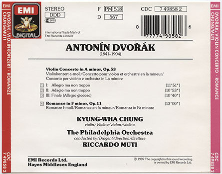 Chung, Kyung-Wha; Muti, Riccardo; Philadelphia Orchestra, The : Dvořák: Violin Concerto, Romance (V001)