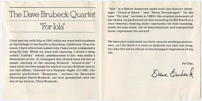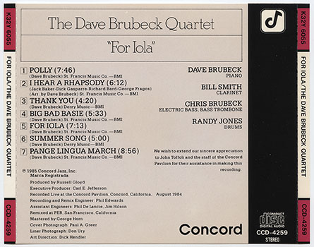 Dave Brubeck Quartet, The : For Iola (V001)