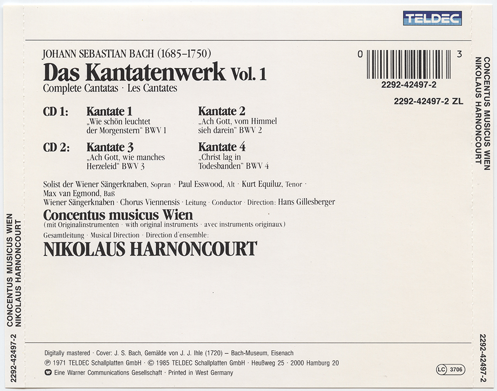 Harnoncourt, Nikolaus; Concentus Musicus Wien : Bach: Das Kantatenwerk Vol. 1 (V001)