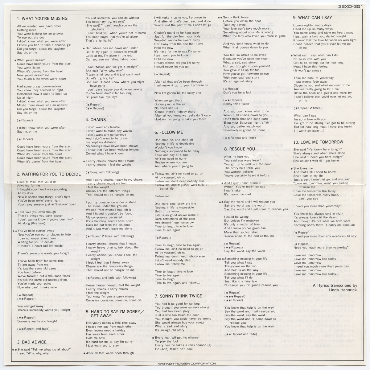 Lyric Sheet Panel 1