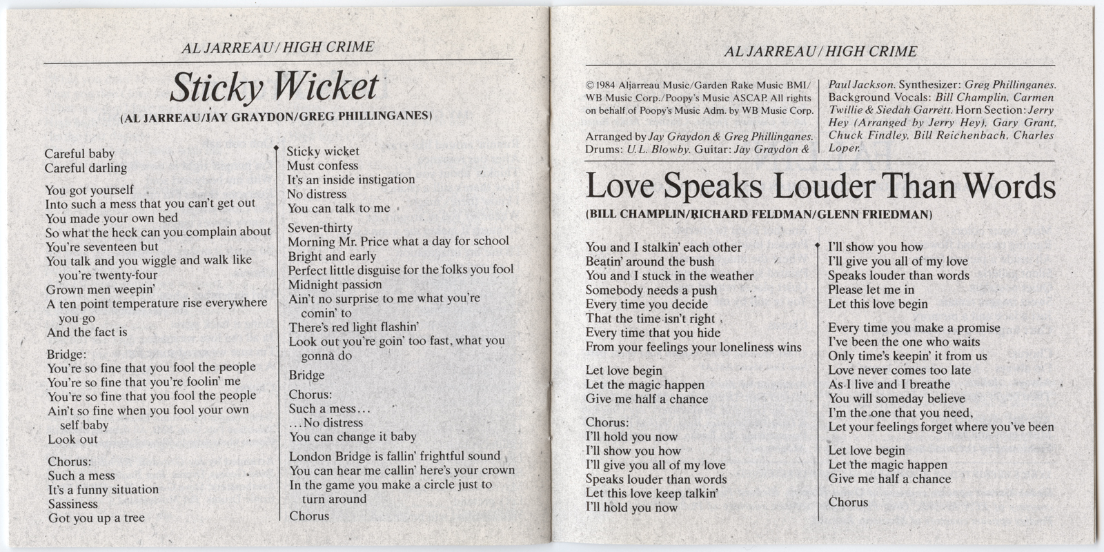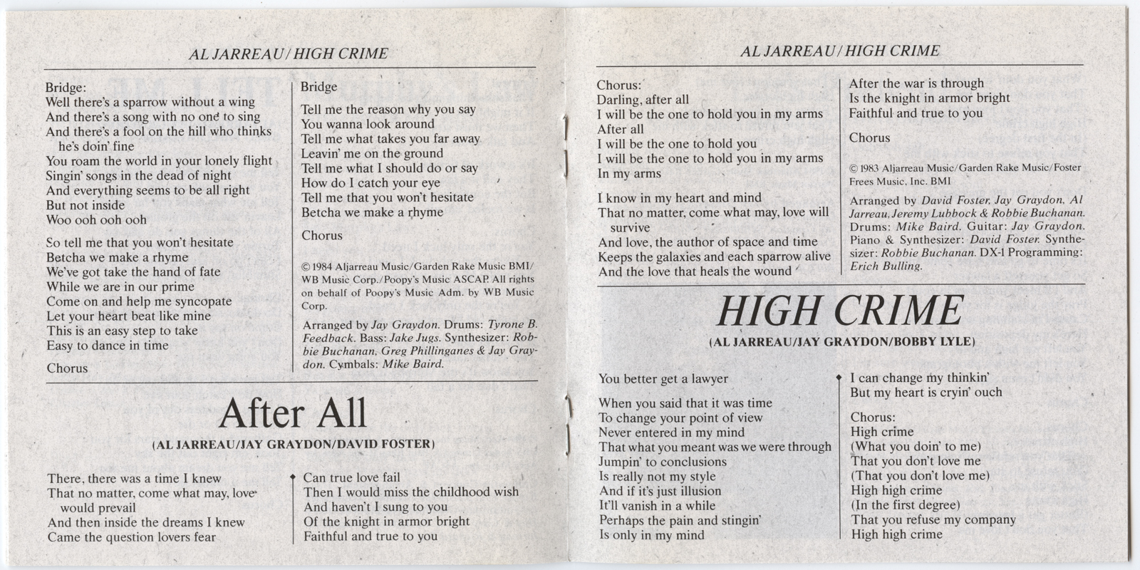 Jarreau, Al : High Crime (V011)