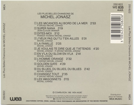 Jonasz, Michel : Plus Belles Chansons De Michel Jonasz, Les (V001-A001)