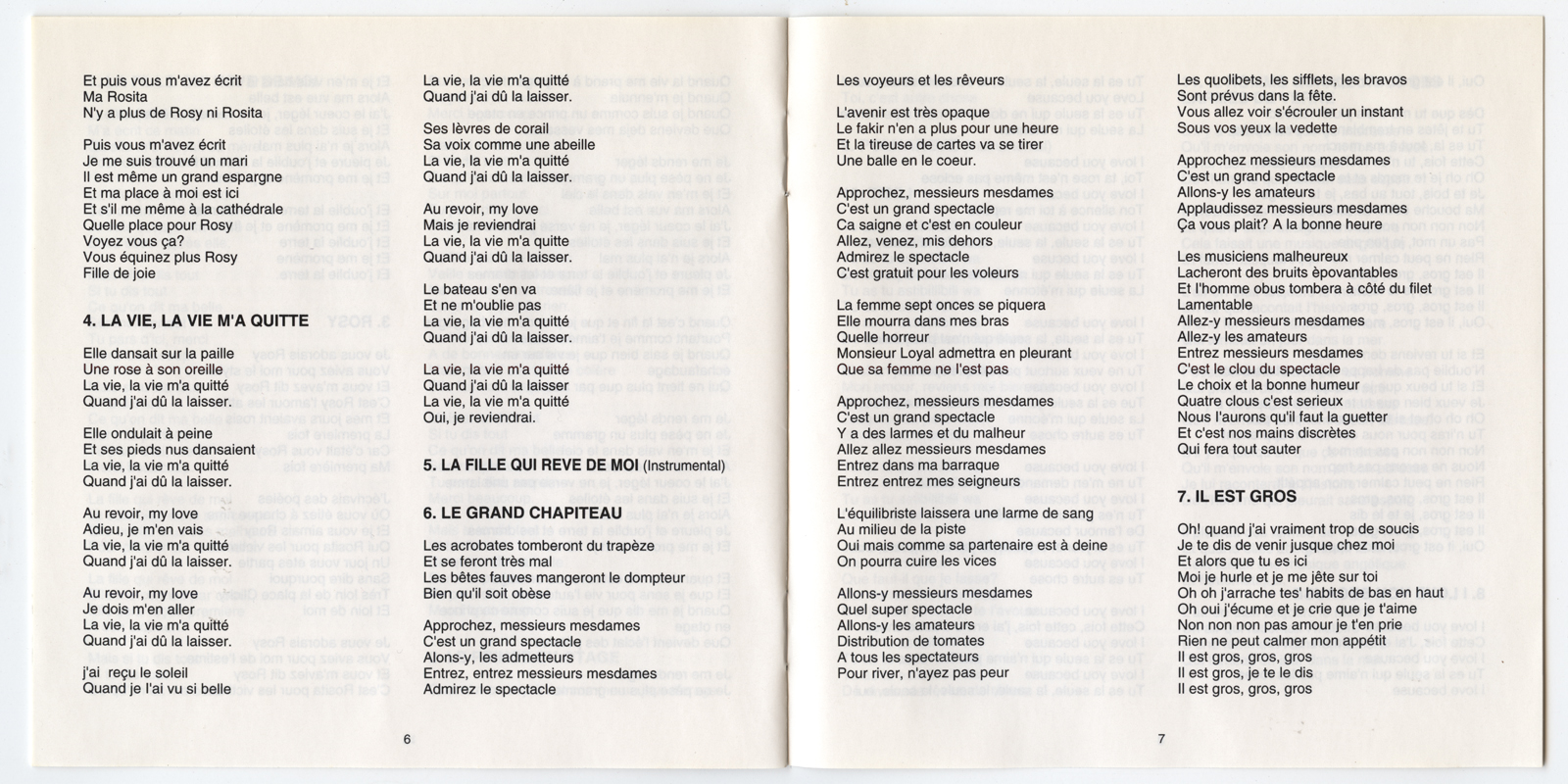 Lyric Sheet Panels 6 and 7