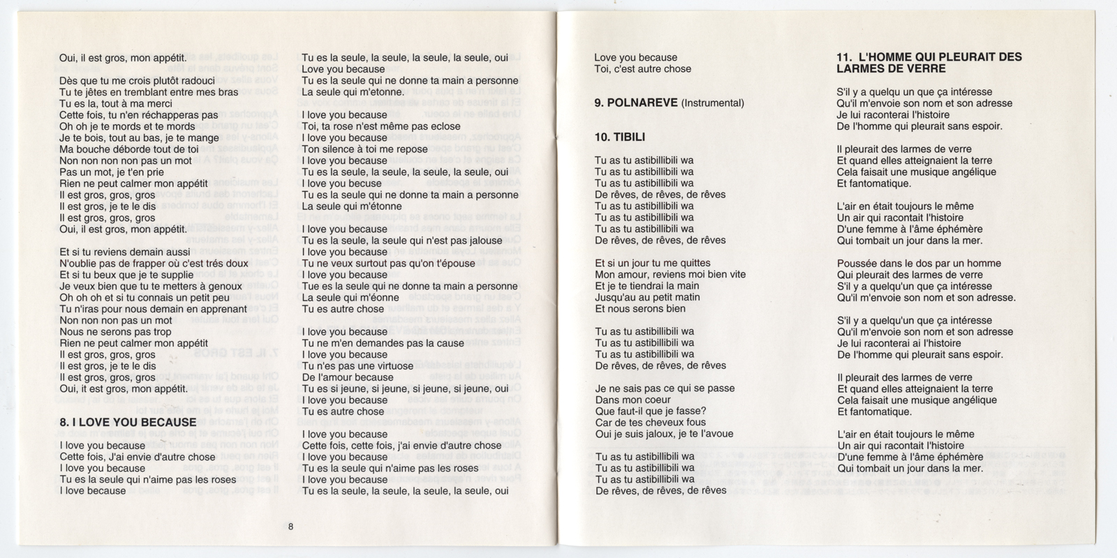 Lyric Sheet Panels 8 and 9