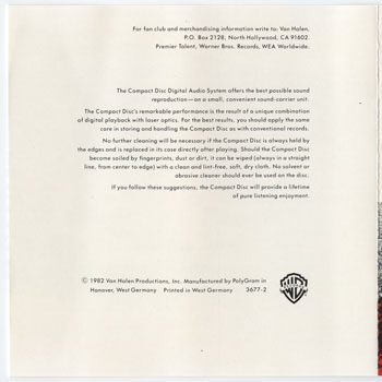 Van Halen : Diver Down (V001-A003)