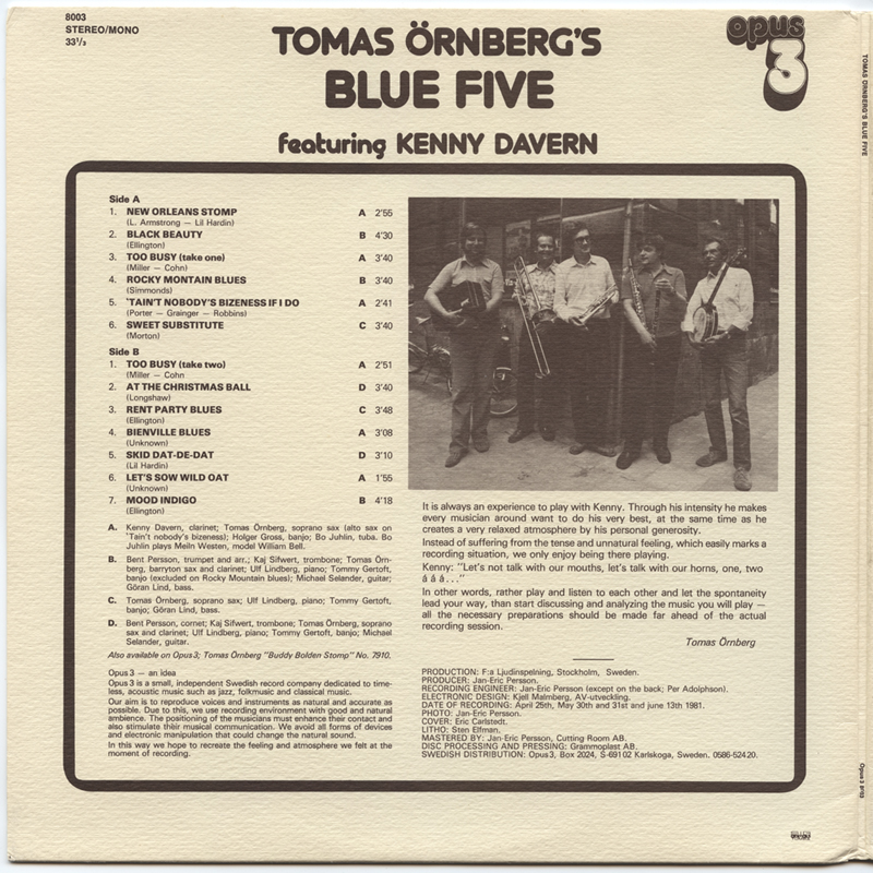 Tomas ÖRNBERG'S BLUE FIVE featuring KENNY DAVERN (V001)