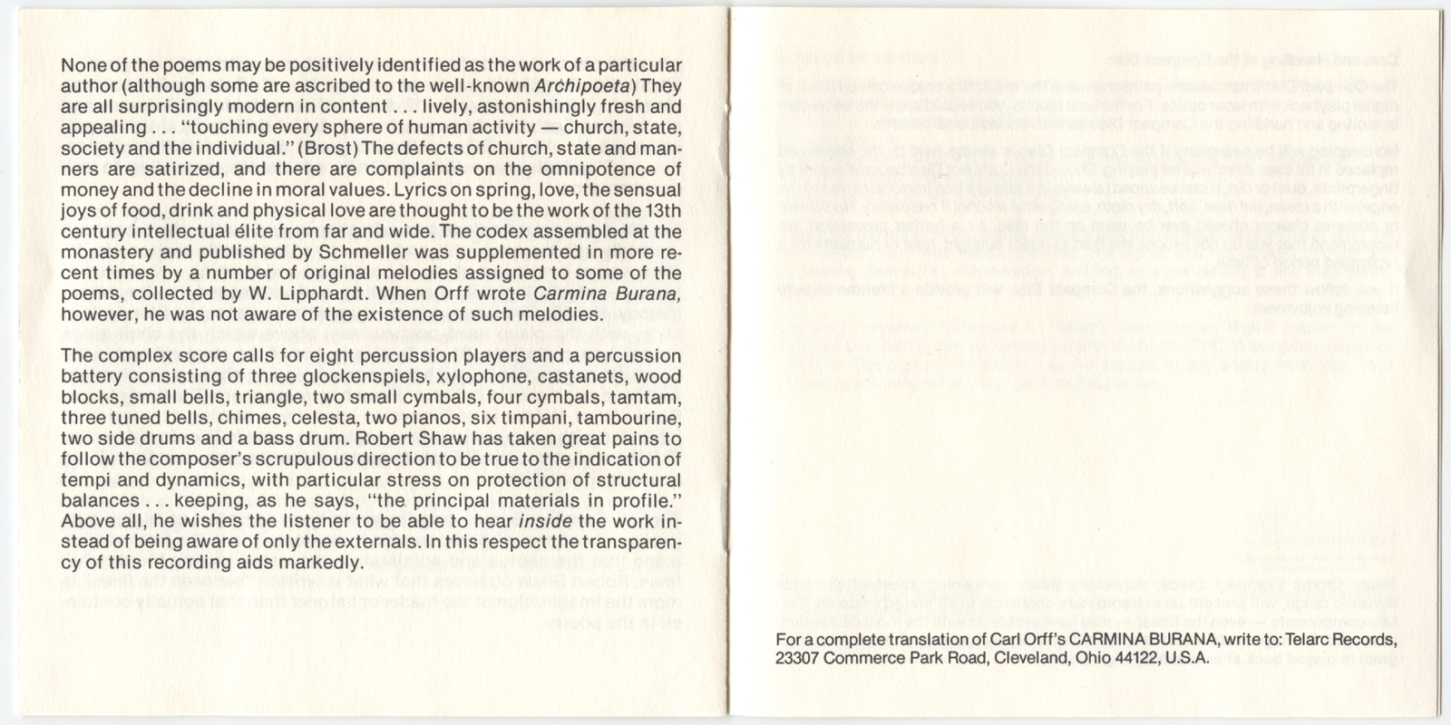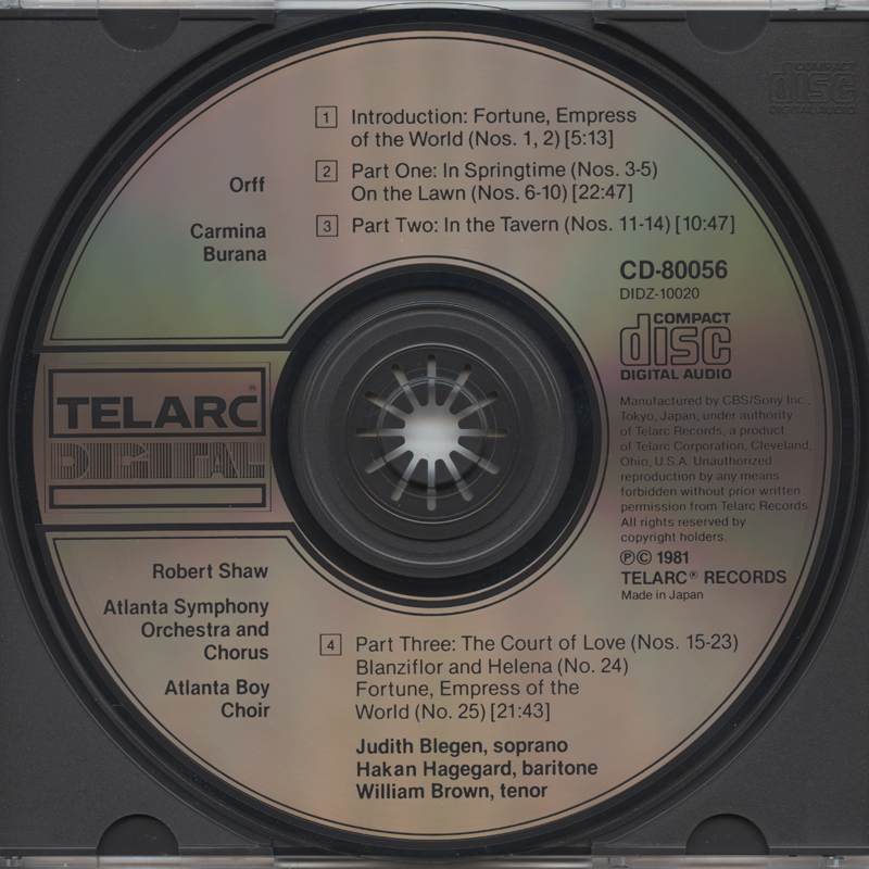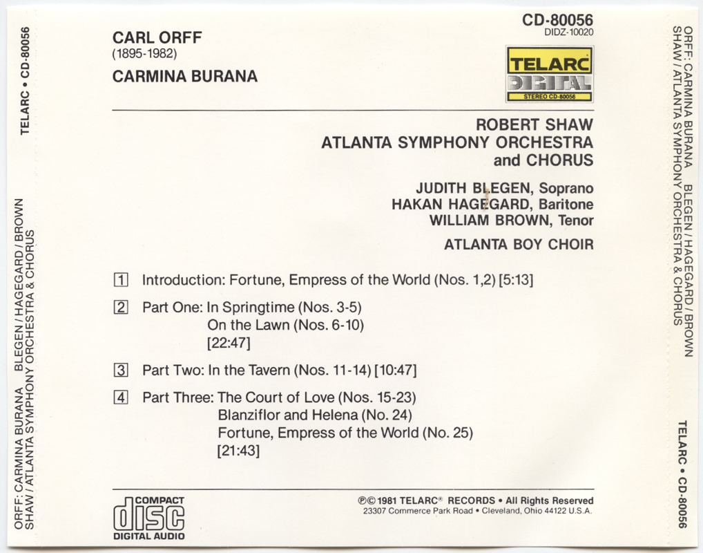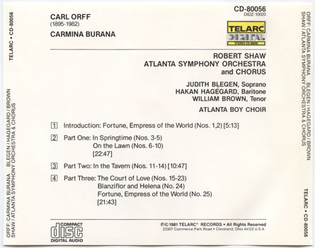 [CD-80056] Carl Orff: Carmina Burana / Robert Shaw, Atlanta Symphony Orchestra & Chorus (V003)