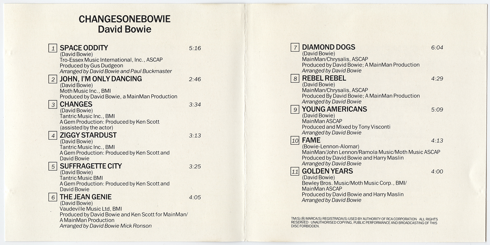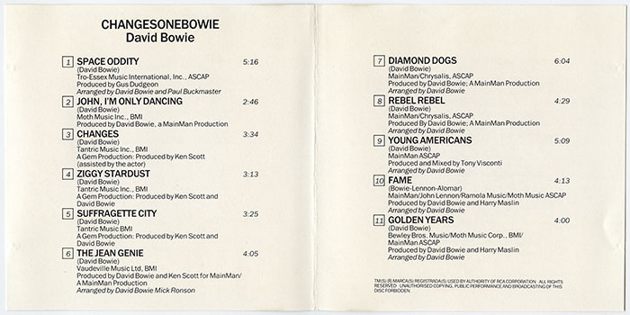 Bowie, David : ChangesOneBowie (V001)
