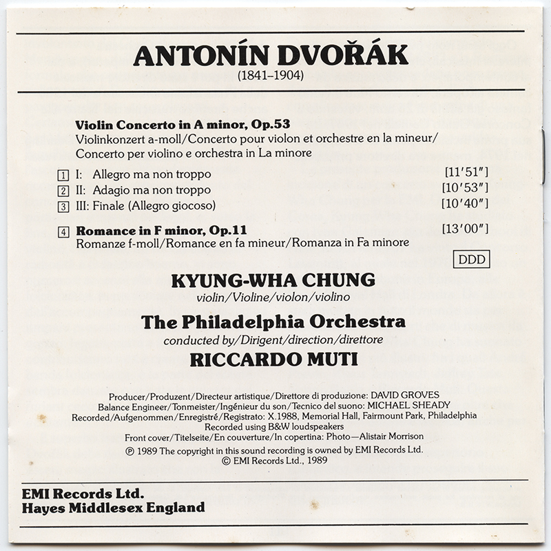 Chung, Kyung-Wha; Muti, Riccardo; Philadelphia Orchestra, The : Dvořák: Violin Concerto, Romance (V001)