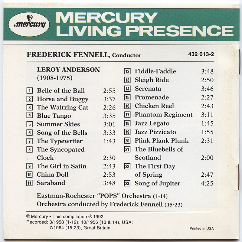 Fennell, Frederick : Frederick Fennell Conducts The Music Of Leroy Anderson (V001)