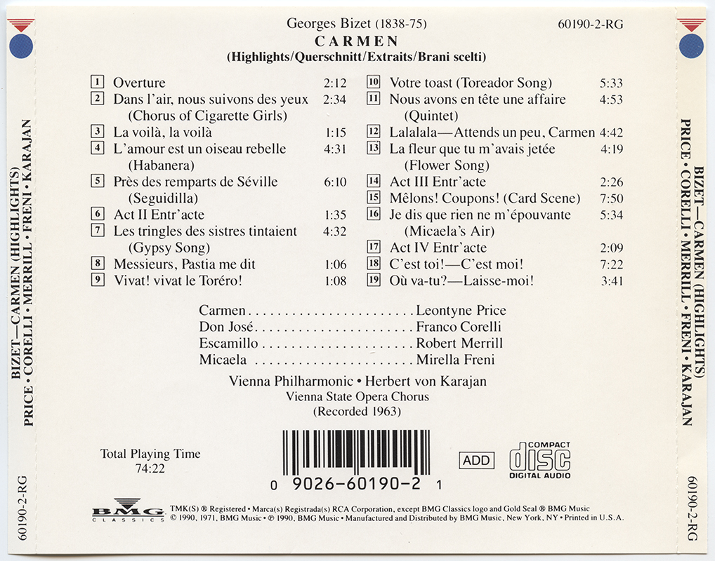 Karajan, Herbert Von; Vienna Philharmonic : Bizet: Carmen (Highlights) (V001)