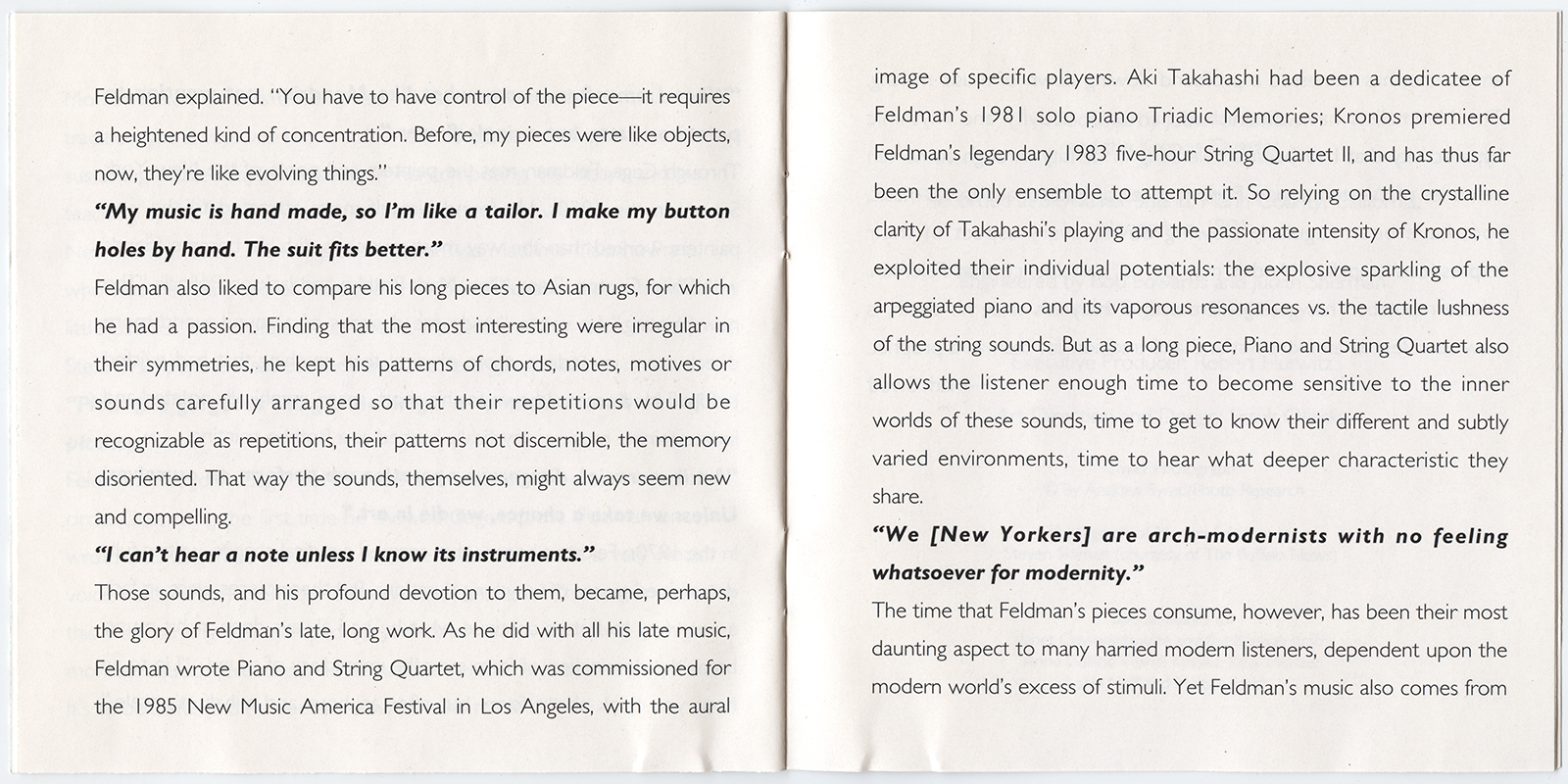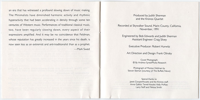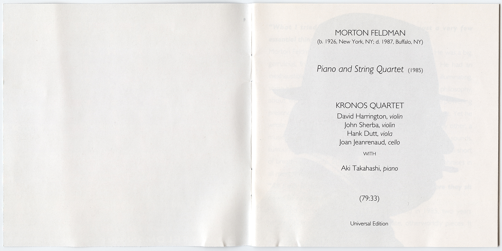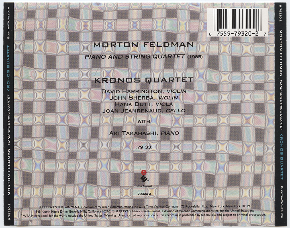 Kronos Quartet With Aki Takahashi : Morton Feldman: Piano And String Quartet (V001)