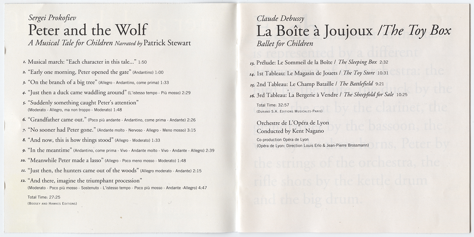 Orchestre De L'Opera De Leon; Nagano, Kent; Stewart, Patrick : Prokofiev: Peter And The Wolf (V001)