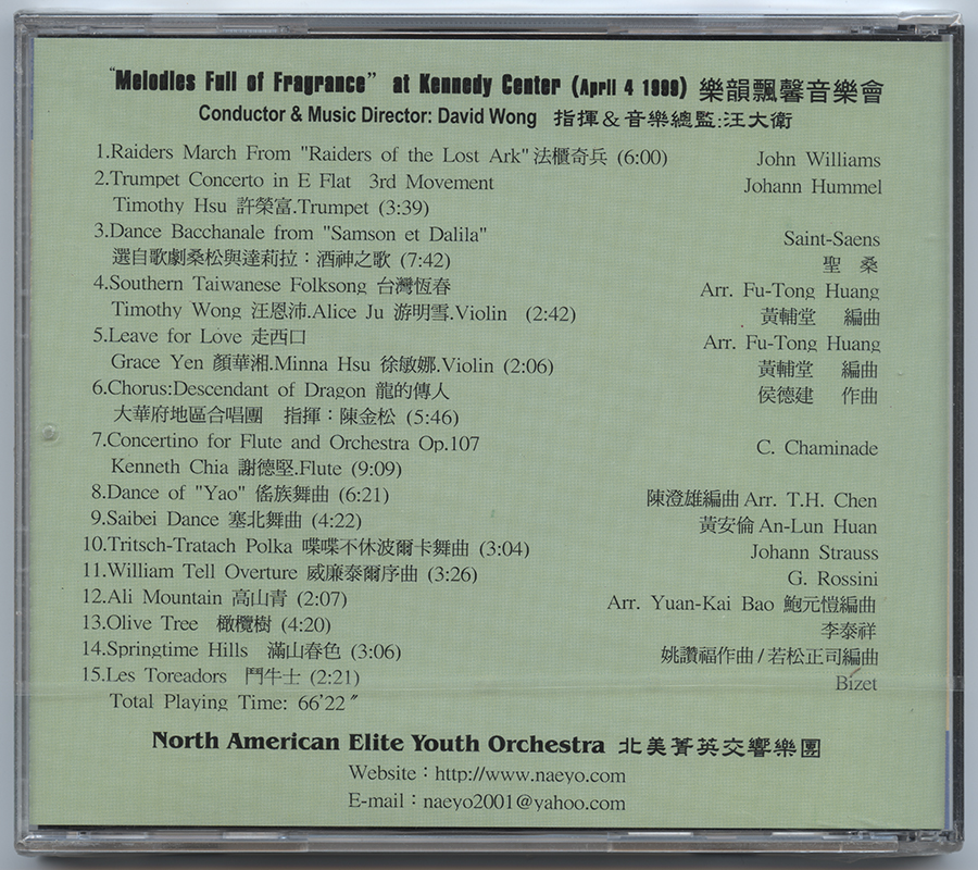 Wong, David; North American Elite Youth Orchestra : "Melodies Full Of Fragrance" At Kennedy Center (April 4 1999) (V001)